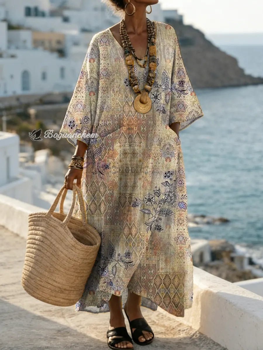 Women's Vintage Pattern Art Print Casual Cotton Dress