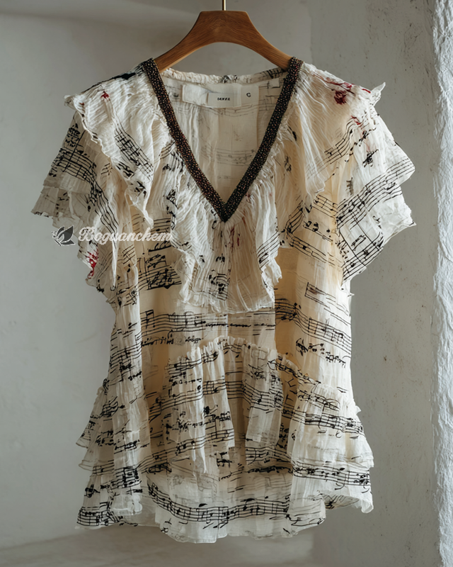 Summer Music Theme Fashion Ruffles Top e84f