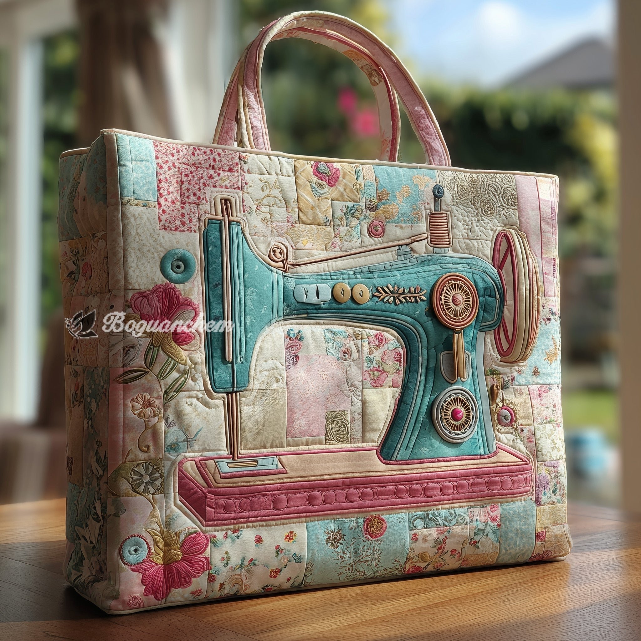 Artistic Sewing Machine Quilted Tote Bag