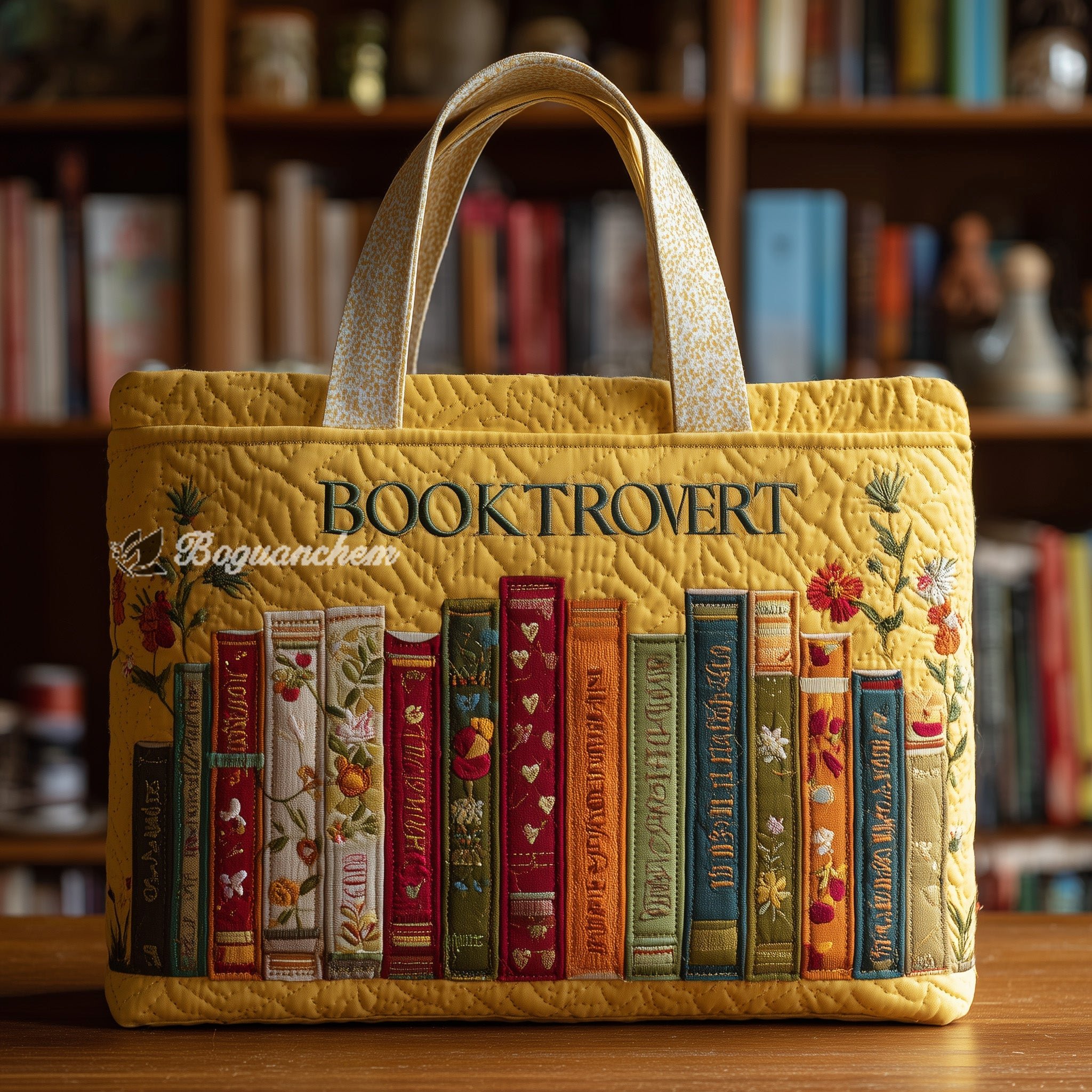 Booktrovert Quilted Tote Bag