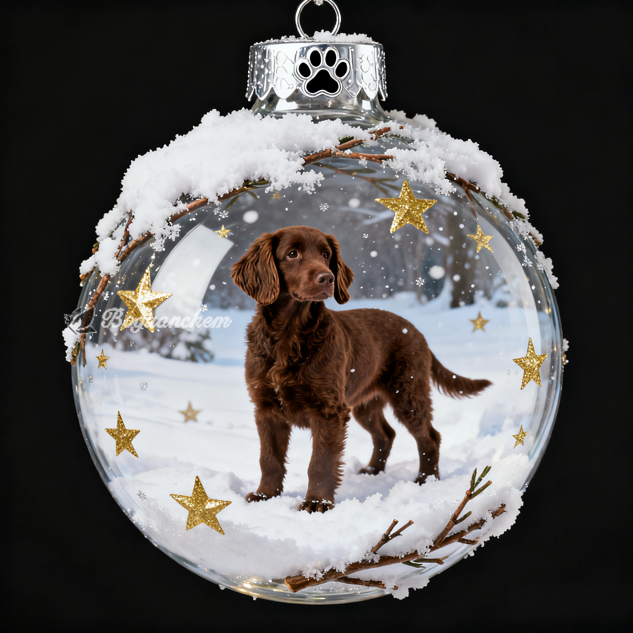 Let this ornament be a reminder of crisp winter days and the joy of furry companions during the holiday season. It’s more than decor—it’s a little slice of winter magic.