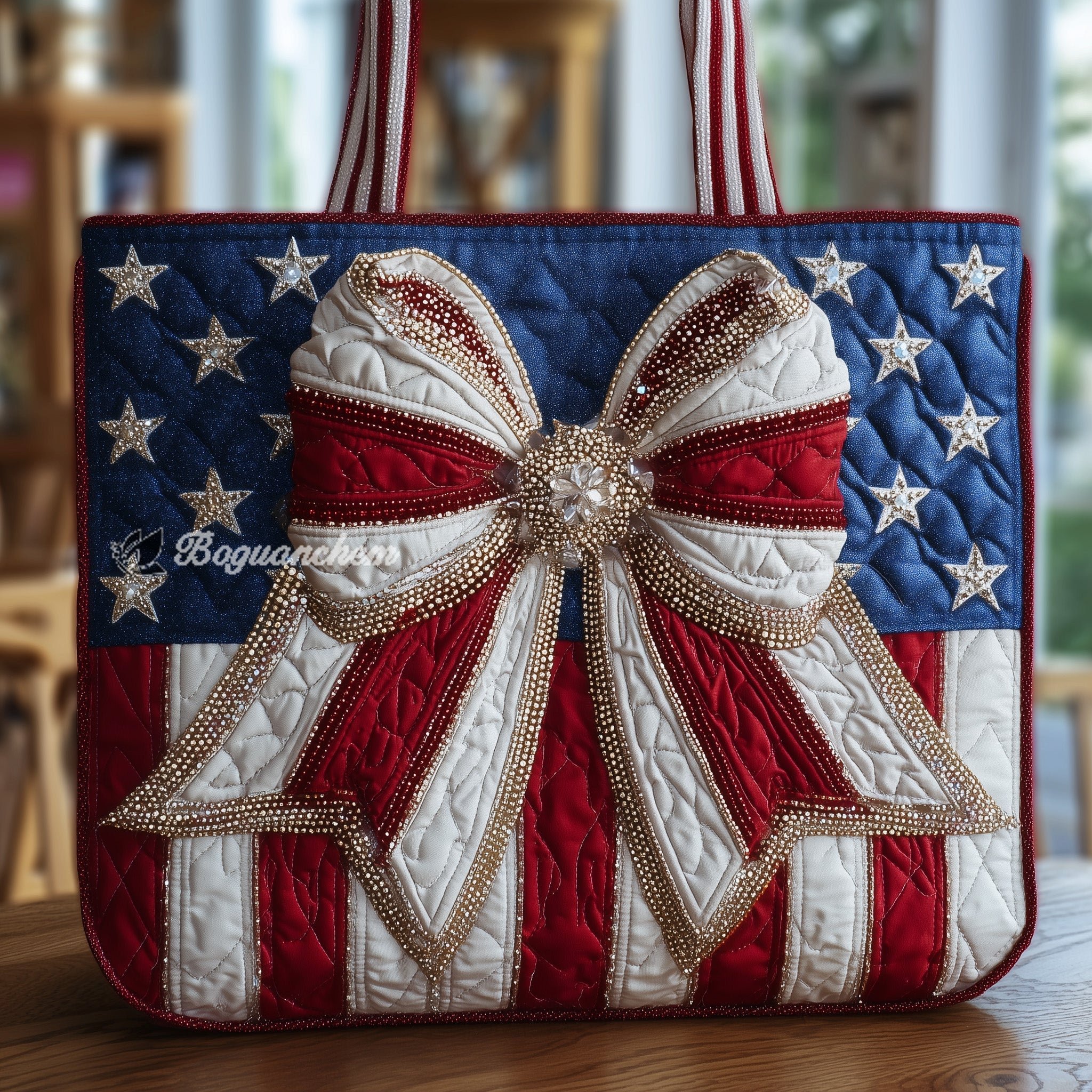 Patriotic Bow Quilted Tote Bag