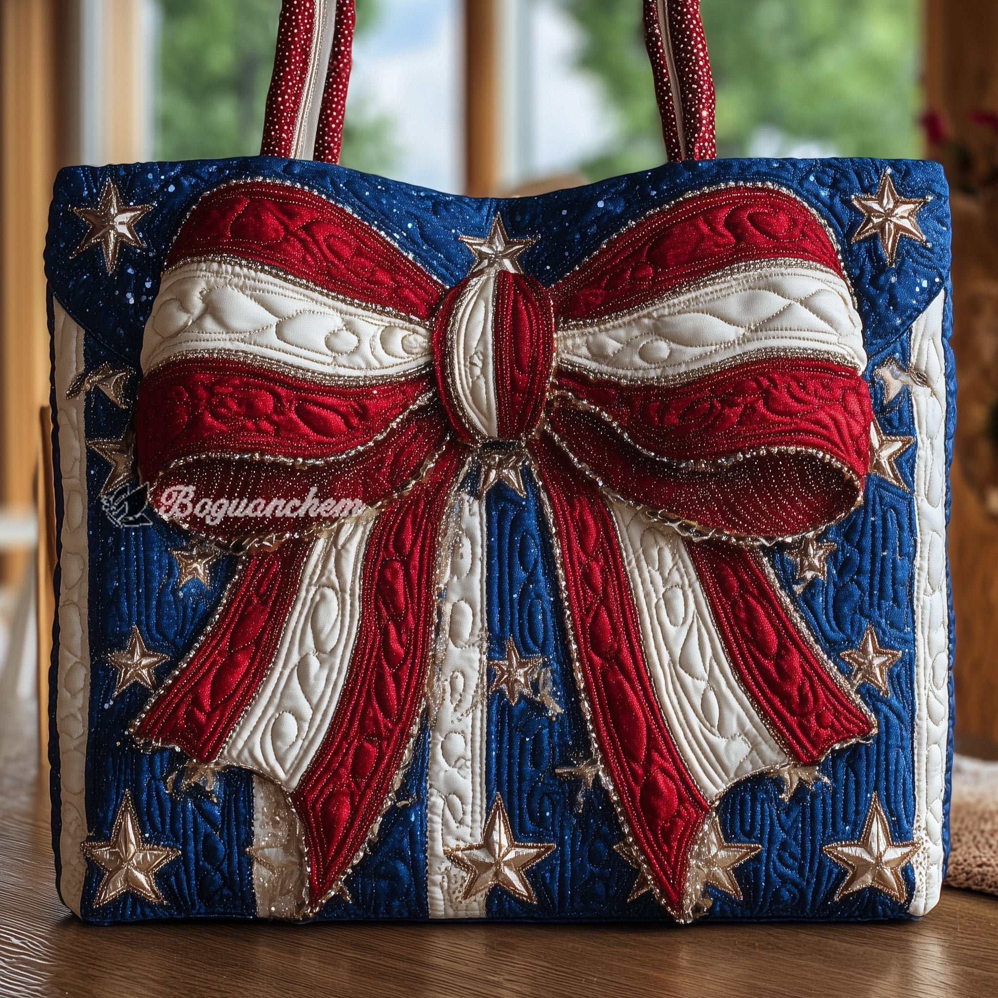 Patriotic Bow Quilted Tote Bag
