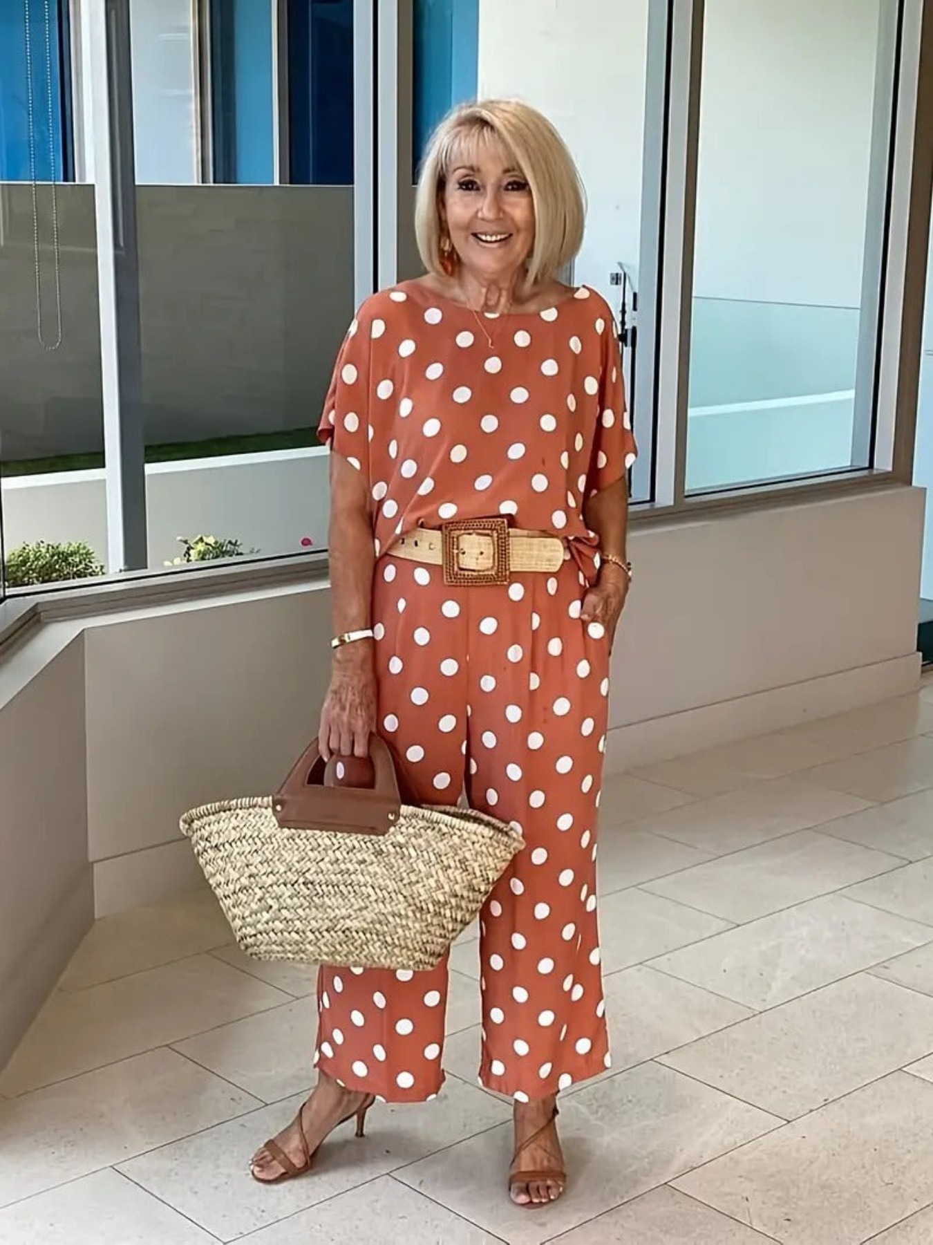 AFFORDABLE AND ACCESSIBLE FASHION! 🧡🧡 ⠀ At first glance I fell in love with these gorgeous easy to wear pants , then I saw the matching top! These SEPARATES are the perfect option for wearing together or separately. Such VERSATILE pieces. ⠀ What an IMPACT when worn together and simply by adding a little rattan belt and tote we have created a stylish everyday look. This top can also be worn out loose for a more casual relaxed look.⠀