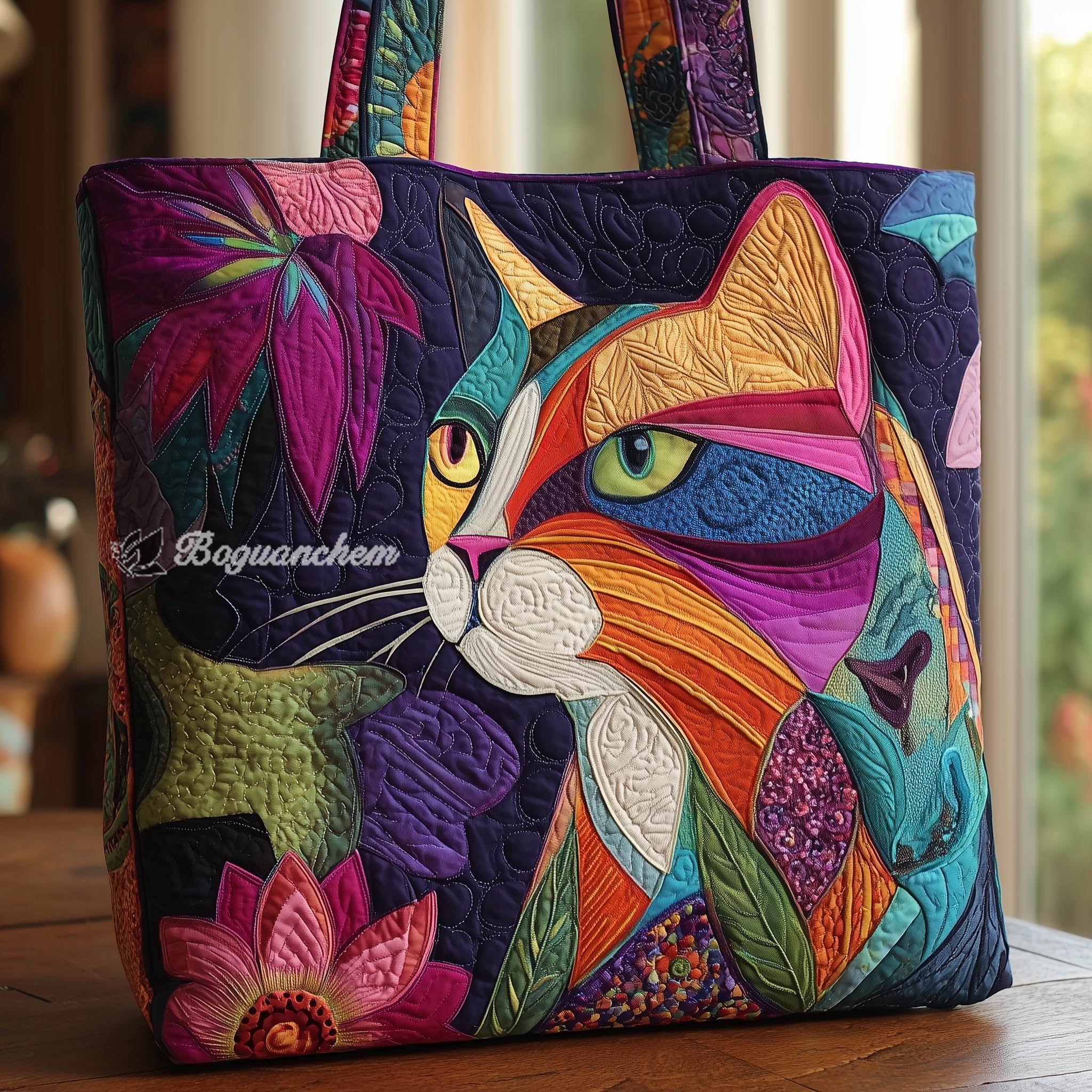 Whimsical Cat Quilted Tote Bag