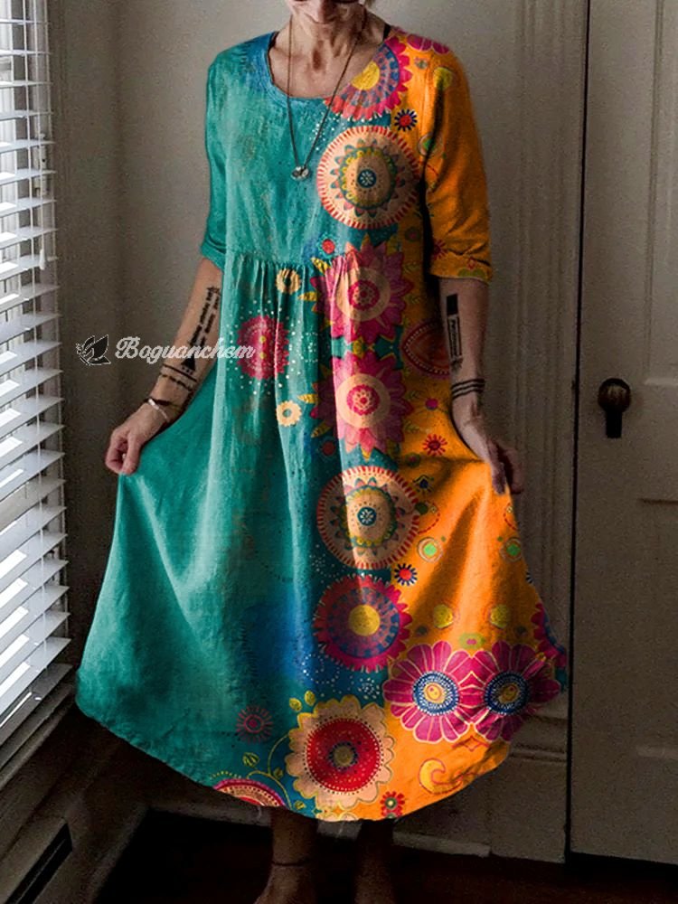 Gender: For Women Style: Casual Fit Type:FIt Shirt Length: Regular Sleeves Length: Long Sleeve Collar: Round Collar Material:Cotton+Linen Material Stretch: No Stretch Pocket :side poctket Weight: 0.300kg Package:1 x Dress