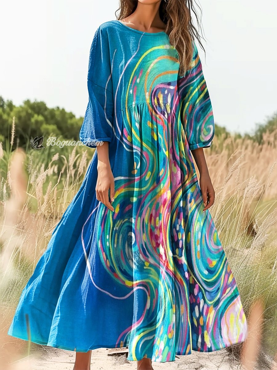 Gender: For Women Style: Casual Fit Type:FIt Shirt Length: Regular Sleeves Length:3/4 Sleeve Collar: Round Collar Material: 100%Cotton Material Stretch: No Stretch Pocket :Side poctket Weight: 0.300kg Package:1 x Dress