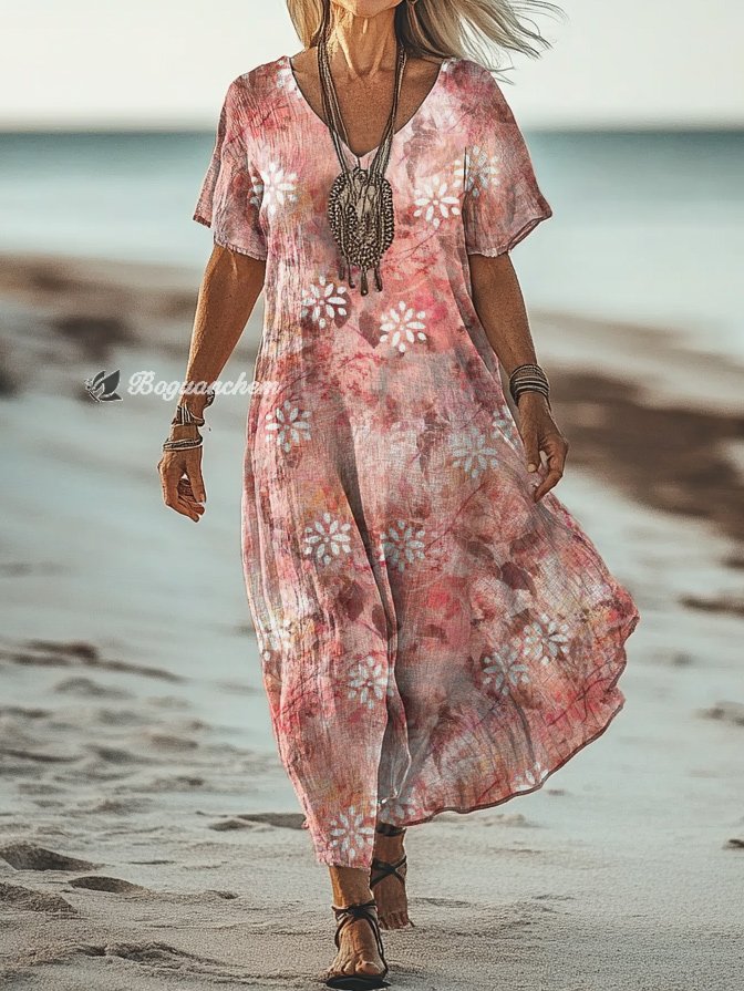 Gender: For Women Style: Casual Fit Type:FIt Shirt Length: Regular Sleeves Length: Short Sleeve Collar: V-Collar Material:Cotton Material Stretch: No Stretch Pocket :Side poctket Weight: 0.300kg Package:1 x Dress