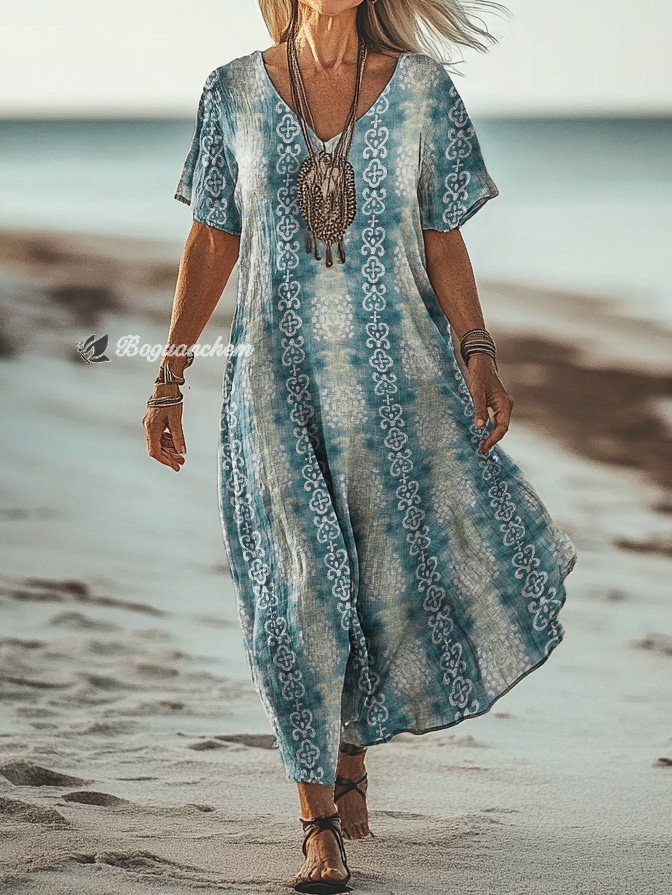Gender: For Women Style: Casual Fit Type:FIt Shirt Length: Regular Sleeves Length: Short Sleeve Collar: V-Collar Material:Cotton Material Stretch: No Stretch Pocket :Side poctket Weight: 0.300kg Package:1 x Dress