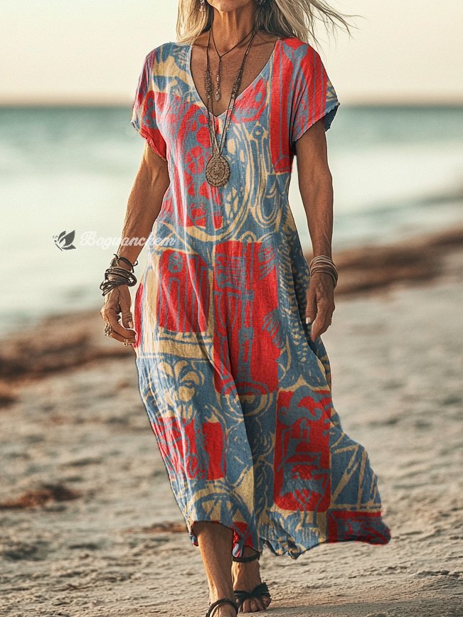 Gender: For Women Style: Casual Fit Type:FIt Shirt Length: Regular Sleeves Length: Short Sleeve Collar: V-Collar Material:Cotton Material Stretch: No Stretch Pocket :Side poctket Weight: 0.300kg Package:1 x Dress