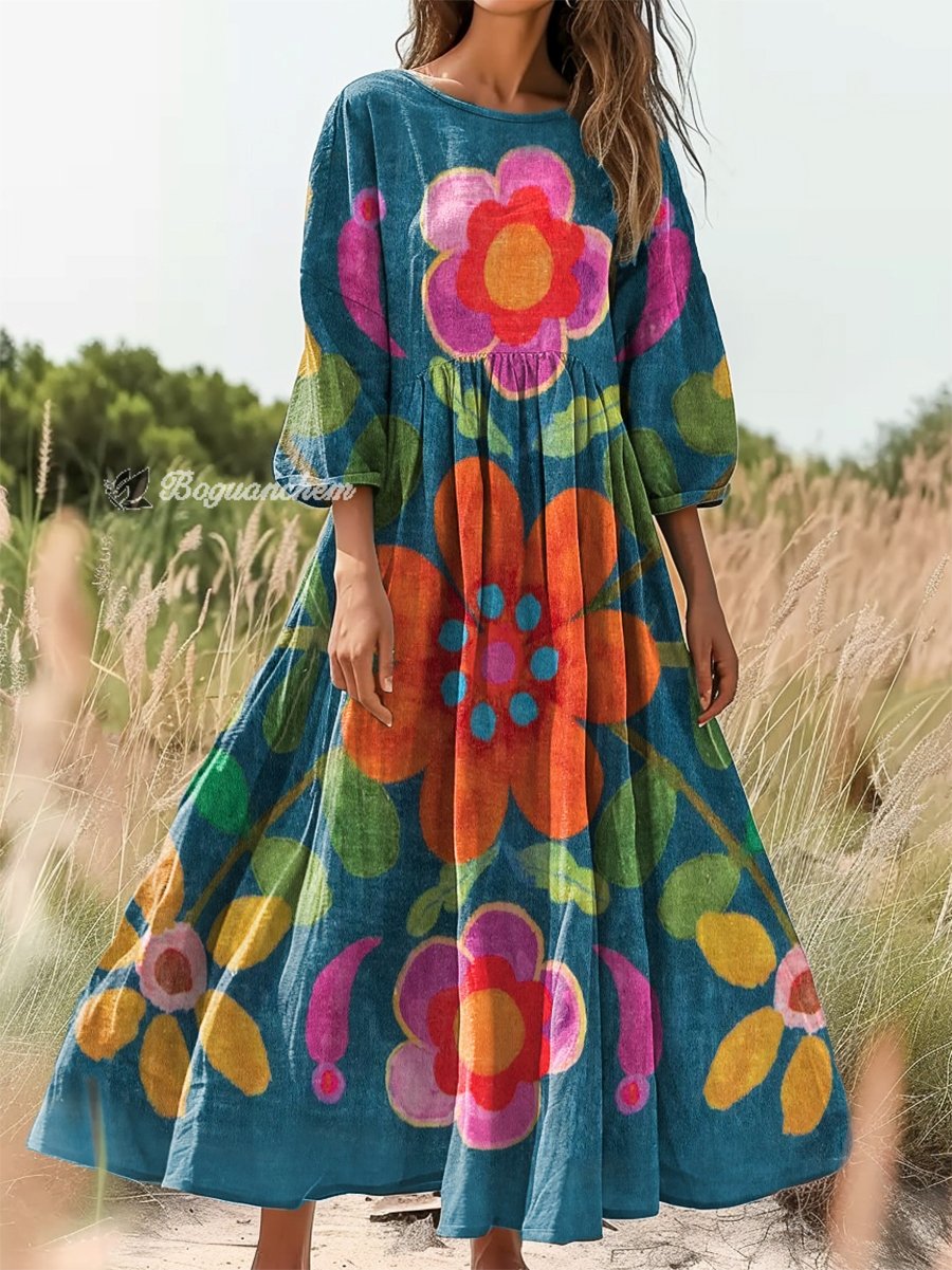 Gender: For Women Style: Casual Fit Type:FIt Shirt Length: Regular Sleeves Length:3/4 Sleeve Collar: Round Collar Material: 100%Cotton Material Stretch: No Stretch Pocket :Side poctket Weight: 0.300kg Package:1 x Dress