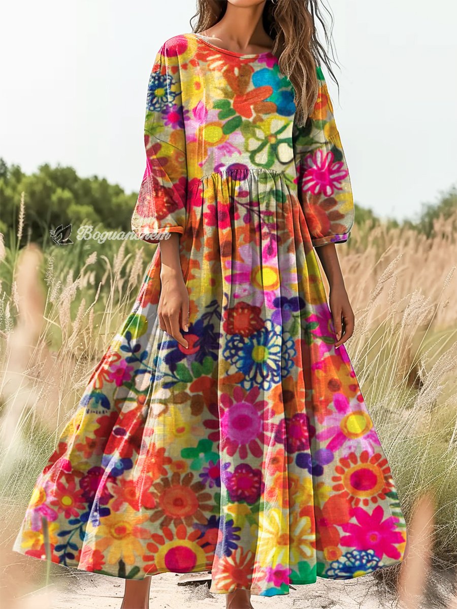 Gender: For Women Style: Casual Fit Type:FIt Shirt Length: Regular Sleeves Length:3/4 Sleeve Collar: Round Collar Material: 100%Cotton Material Stretch: No Stretch Pocket :Side poctket Weight: 0.300kg Package:1 x Dress