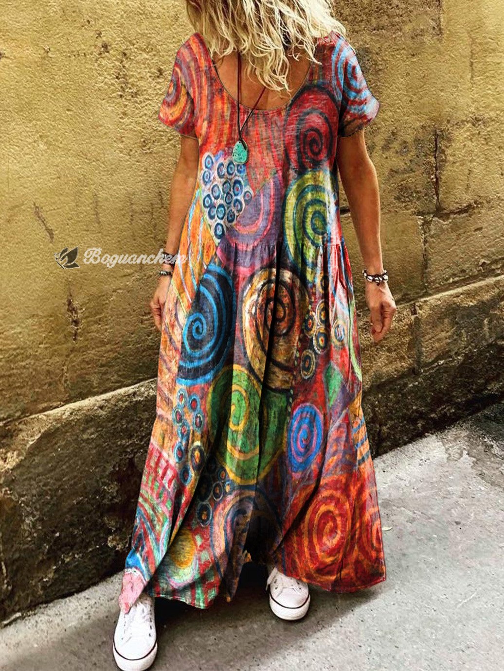 Gender: For Women Style: Casual Fit Type:FIt Shirt Length: Regular Sleeves Length: Short Sleeve Collar: Round Collar Material:Cotton Material Stretch: High Stretch Pocket :side poctket Weight: 0.300kg Package:1 x Dress