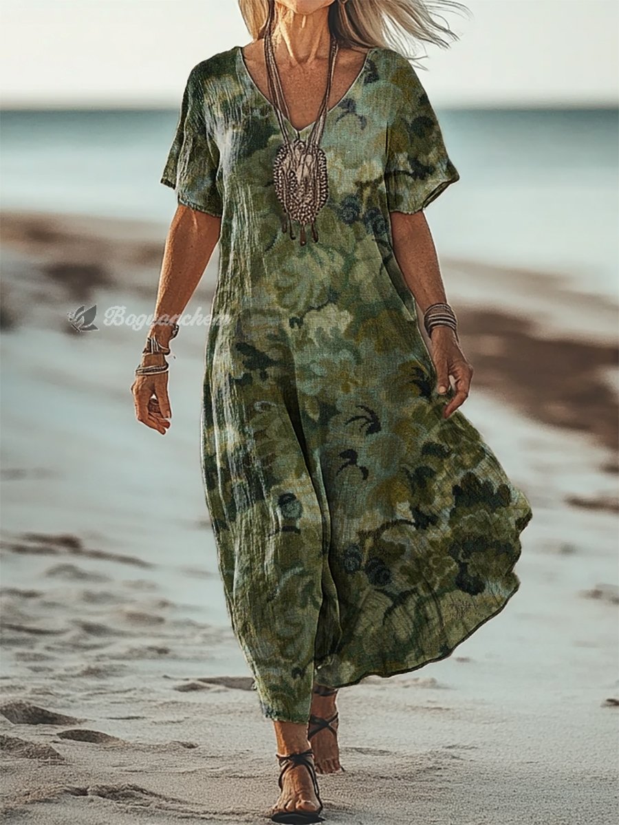 Gender: For Women Style: Casual Fit Type:FIt Shirt Length: Regular Sleeves Length: Short Sleeve Collar: V-Collar Material:Cotton Material Stretch: No Stretch Pocket :Side poctket Weight: 0.300kg Package:1 x Dress