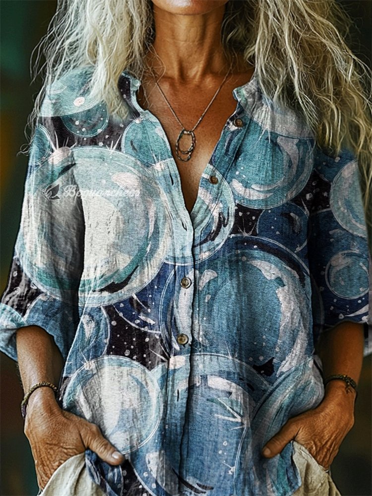 Women's Bubble Pattern Art Print Linen Cotton Casual Shirt