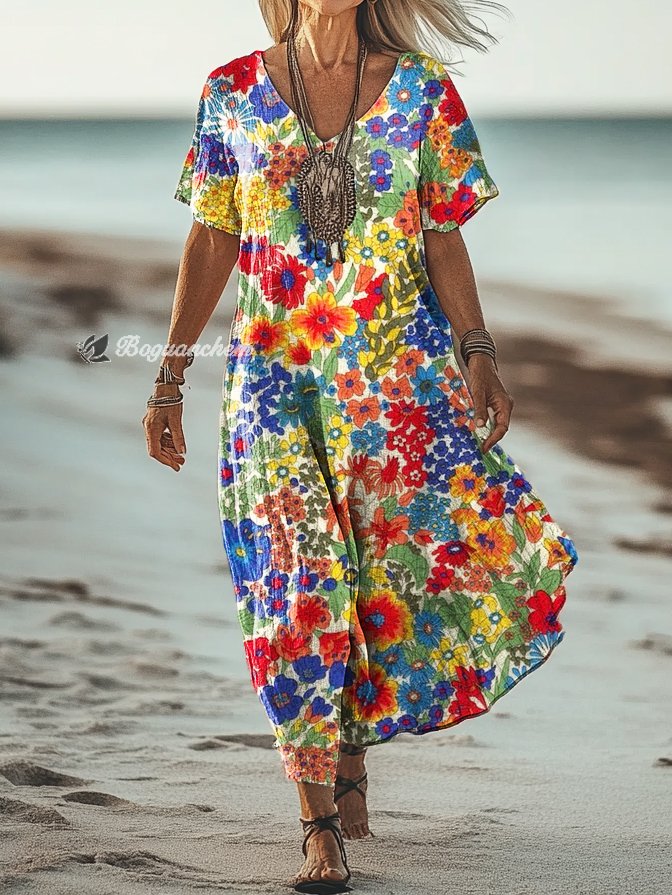 Gender: For Women Style: Casual Fit Type:FIt Shirt Length: Regular Sleeves Length: Short Sleeve Collar: V-Collar Material:Cotton Material Stretch: No Stretch Pocket :Side poctket Weight: 0.300kg Package:1 x Dress