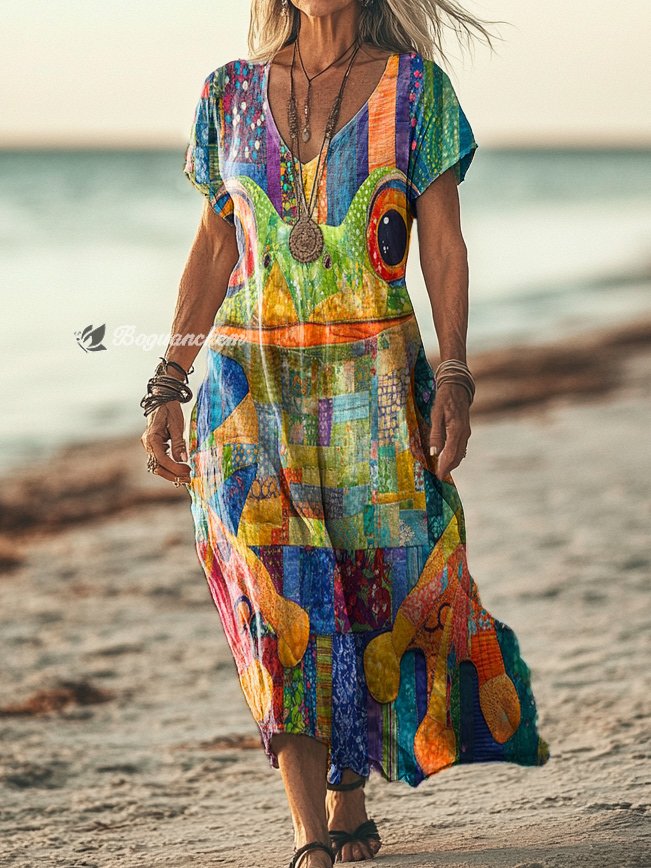 Gender: For Women Style: Casual Fit Type:FIt Shirt Length: Regular Sleeves Length: Short Sleeve Collar: V-Collar Material:Cotton Material Stretch: No Stretch Pocket :Side poctket Weight: 0.300kg Package:1 x Dress