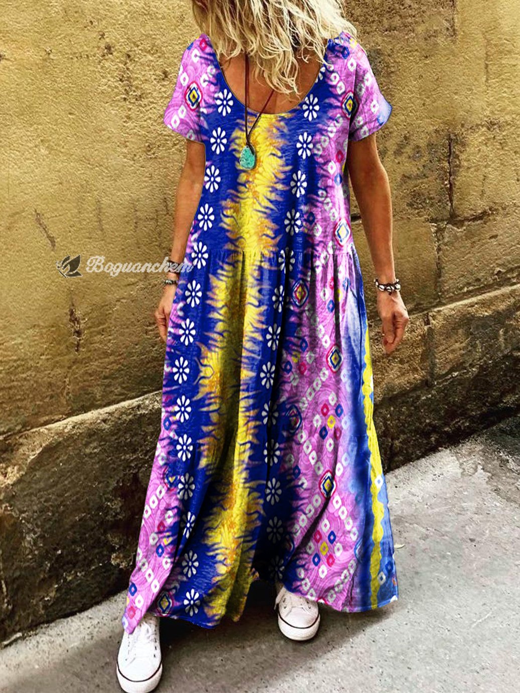 Gender: For Women Style: Casual Fit Type:FIt Shirt Length: Regular Sleeves Length: Short Sleeve Collar: Round Collar Material:Cotton Material Stretch: High Stretch Pocket :side poctket Weight: 0.300kg Package:1 x Dress