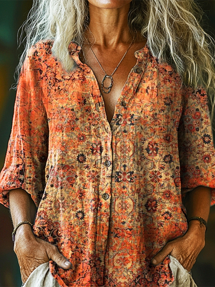 Women's Ethnic Totem Art Print Casual Cotton and Linen Shirt
