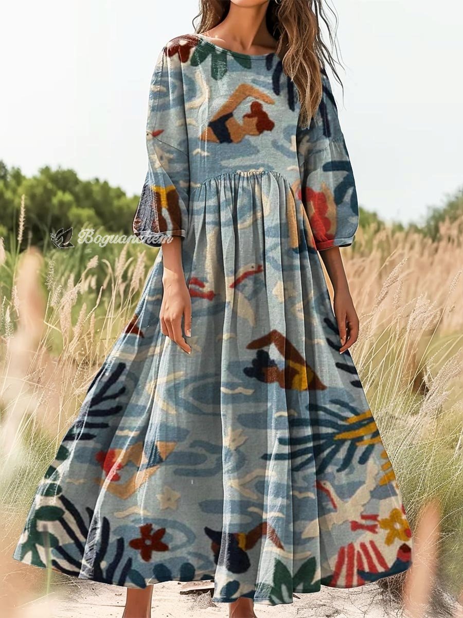 Gender: For Women Style: Casual Fit Type:FIt Shirt Length: Regular Sleeves Length:3/4 Sleeve Collar: Round Collar Material: 100%Cotton Material Stretch: No Stretch Pocket :Side poctket Weight: 0.300kg Package:1 x Dress