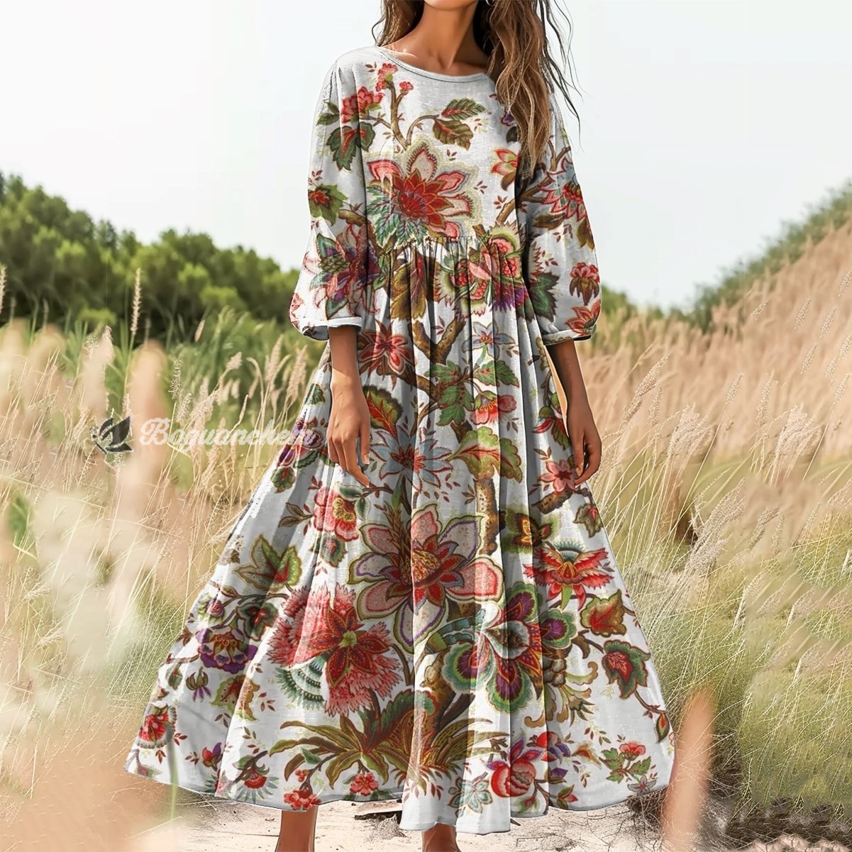 Gender: For Women Style: Casual Fit Type:FIt Shirt Length: Regular Sleeves Length:3/4 Sleeve Collar: Round Collar Material: 100%Cotton Material Stretch: No Stretch Pocket :Side poctket Weight: 0.300kg Package:1 x Dress