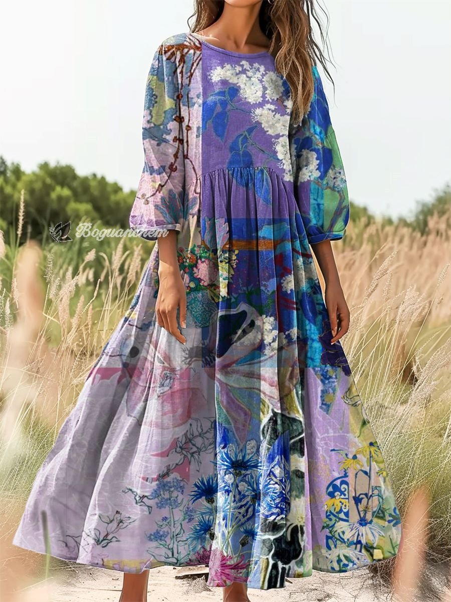 Gender: For Women Style: Casual Fit Type:FIt Shirt Length: Regular Sleeves Length:3/4 Sleeve Collar: Round Collar Material: 100%Cotton Material Stretch: No Stretch Pocket :Side poctket Weight: 0.300kg Package:1 x Dress