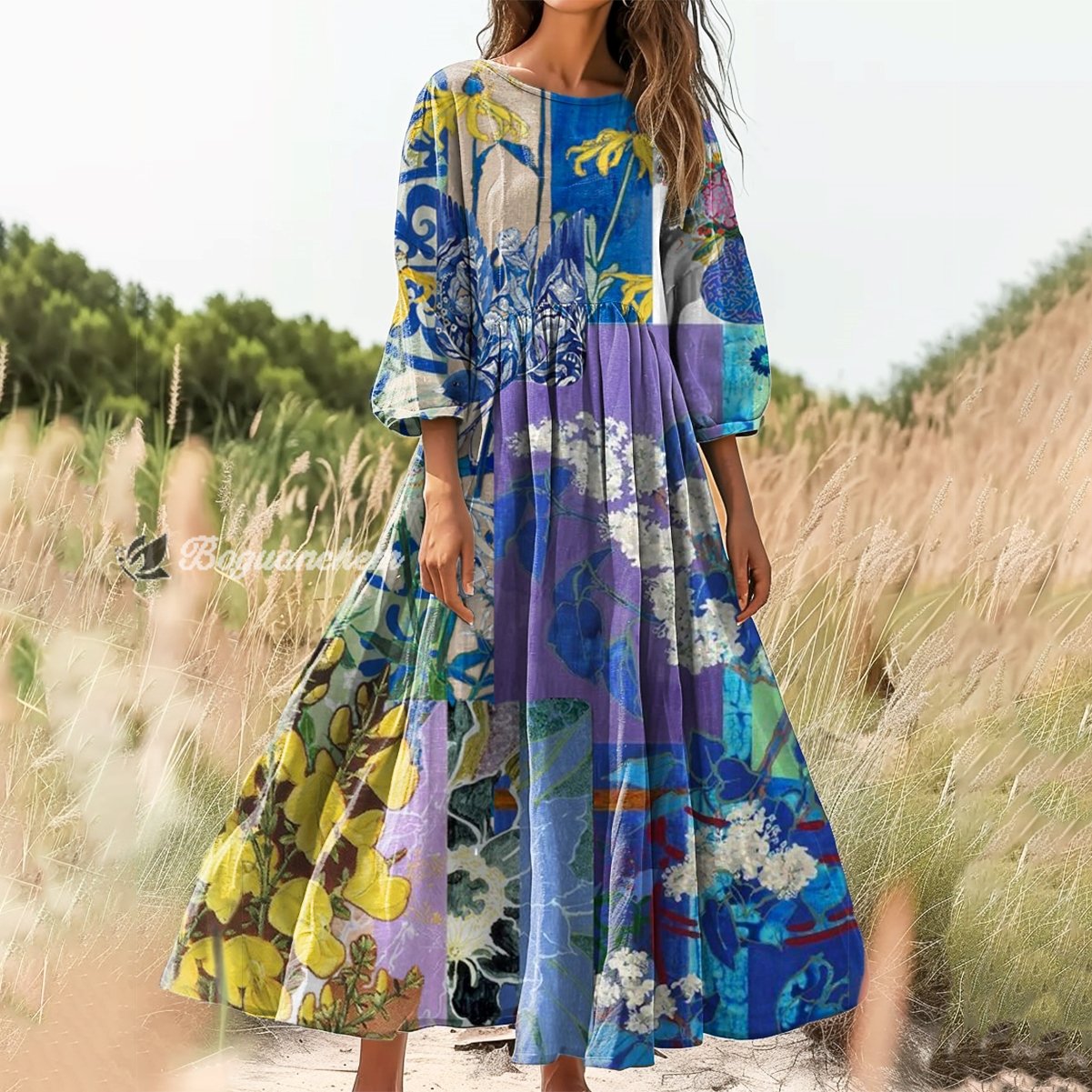 Gender: For Women Style: Casual Fit Type:FIt Shirt Length: Regular Sleeves Length:3/4 Sleeve Collar: Round Collar Material: 100%Cotton Material Stretch: No Stretch Pocket :Side poctket Weight: 0.300kg Package:1 x Dress