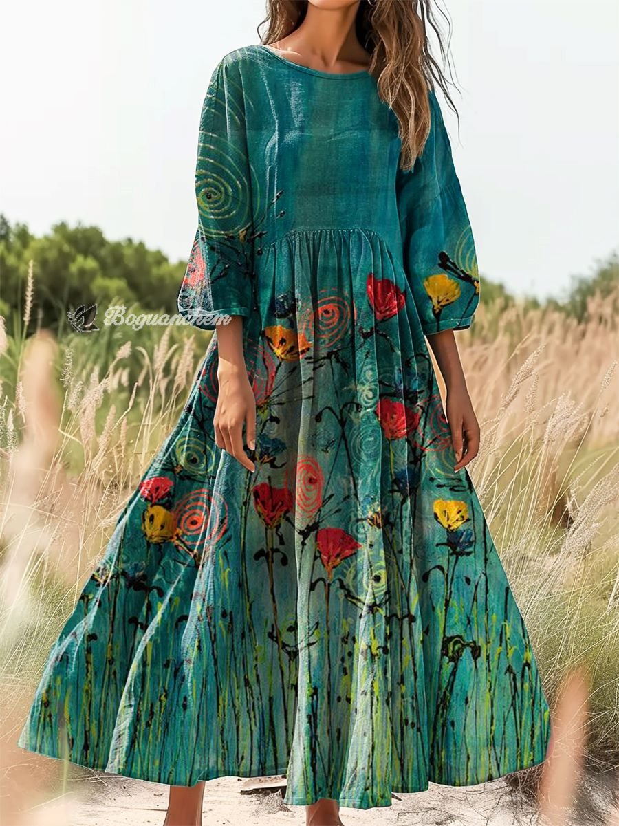 Gender: For Women Style: Casual Fit Type:FIt Shirt Length: Regular Sleeves Length:3/4 Sleeve Collar: Round Collar Material: 100%Cotton Material Stretch: No Stretch Pocket :Side poctket Weight: 0.300kg Package:1 x Dress