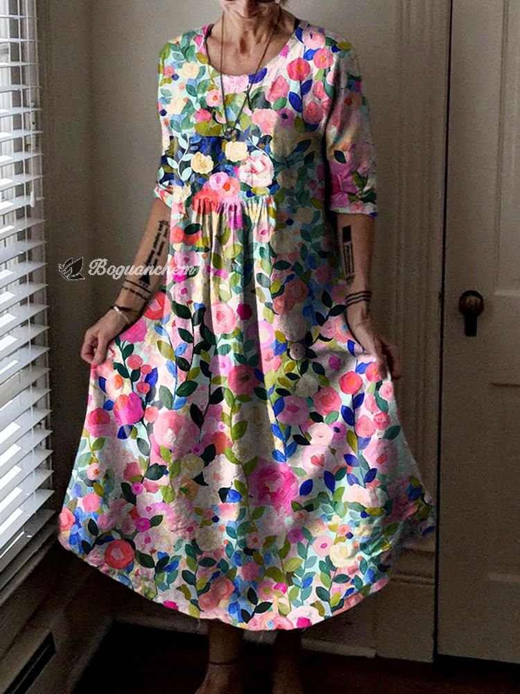 Gender: For Women Style: Casual Fit Type:FIt Shirt Length: Regular Sleeves Length: Long Sleeve Collar: Round Collar Material:Cotton+Linen Material Stretch: No Stretch Pocket :side poctket Weight: 0.300kg Package:1 x Dress