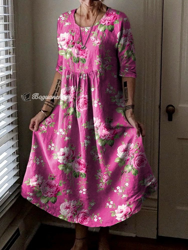 Gender: For Women Style: Casual Fit Type:FIt Shirt Length: Regular Sleeves Length: Long Sleeve Collar: Round Collar Material:Cotton+Linen Material Stretch: No Stretch Pocket :side poctket Weight: 0.300kg Package:1 x Dress