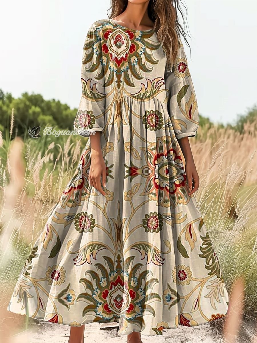 Gender: For Women Style: Casual Fit Type:FIt Shirt Length: Regular Sleeves Length:3/4 Sleeve Collar: Round Collar Material: 100%Cotton Material Stretch: No Stretch Pocket :Side poctket Weight: 0.300kg Package:1 x Dress