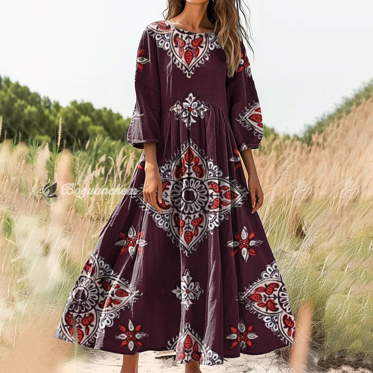 Gender: For Women Style: Casual Fit Type:FIt Shirt Length: Regular Sleeves Length:3/4 Sleeve Collar: Round Collar Material: 100%Cotton Material Stretch: No Stretch Pocket :Side poctket Weight: 0.300kg Package:1 x Dress