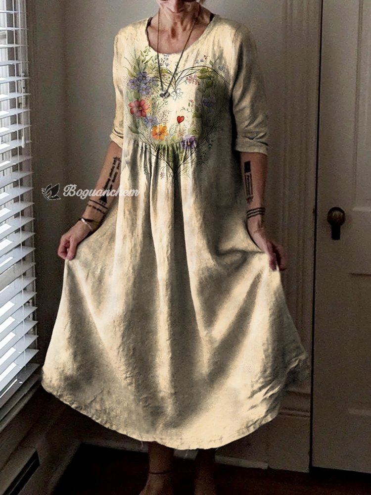 Gender: For Women Style: Casual Fit Type:FIt Shirt Length: Regular Sleeves Length: Long Sleeve Collar: Round Collar Material:Cotton+Linen Material Stretch: No Stretch Pocket :side poctket Weight: 0.300kg Package:1 x Dress