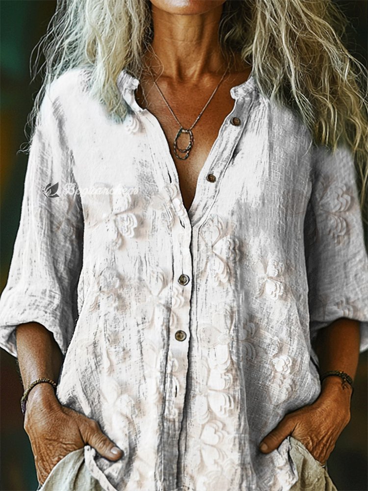 Women's Floral Pattern Art Print Casual Cotton Linen Shirt