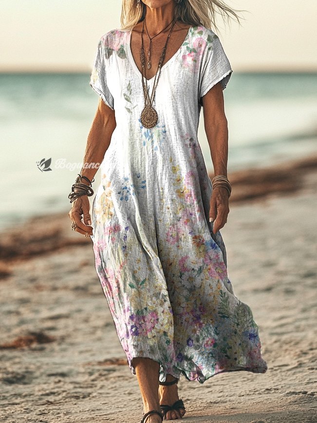 Gender: For Women Style: Casual Fit Type:FIt Shirt Length: Regular Sleeves Length: Short Sleeve Collar: V-Collar Material:Cotton Material Stretch: No Stretch Pocket :Side poctket Weight: 0.300kg Package:1 x Dress
