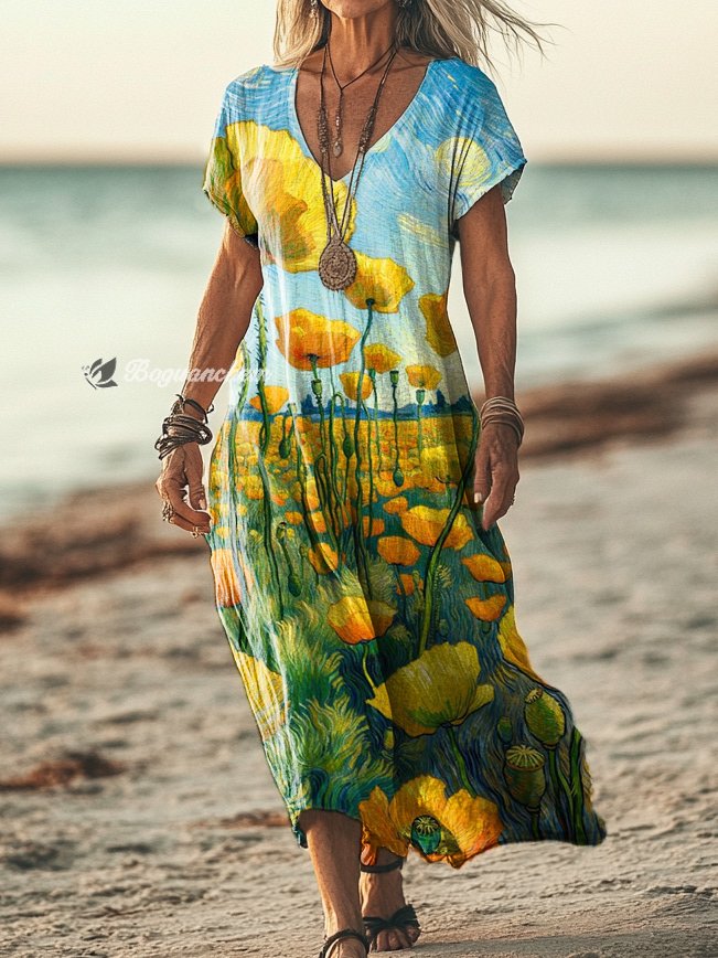 Gender: For Women Style: Casual Fit Type:FIt Shirt Length: Regular Sleeves Length: Short Sleeve Collar: V-Collar Material:Cotton Material Stretch: No Stretch Pocket :Side poctket Weight: 0.300kg Package:1 x Dress