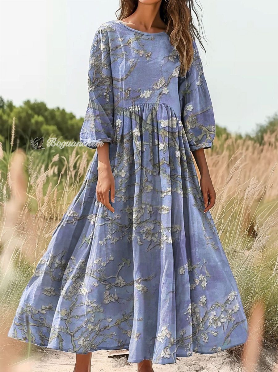 Gender: For Women Style: Casual Fit Type:FIt Shirt Length: Regular Sleeves Length:3/4 Sleeve Collar: Round Collar Material: 100%Cotton Material Stretch: No Stretch Pocket :Side poctket Weight: 0.300kg Package:1 x Dress