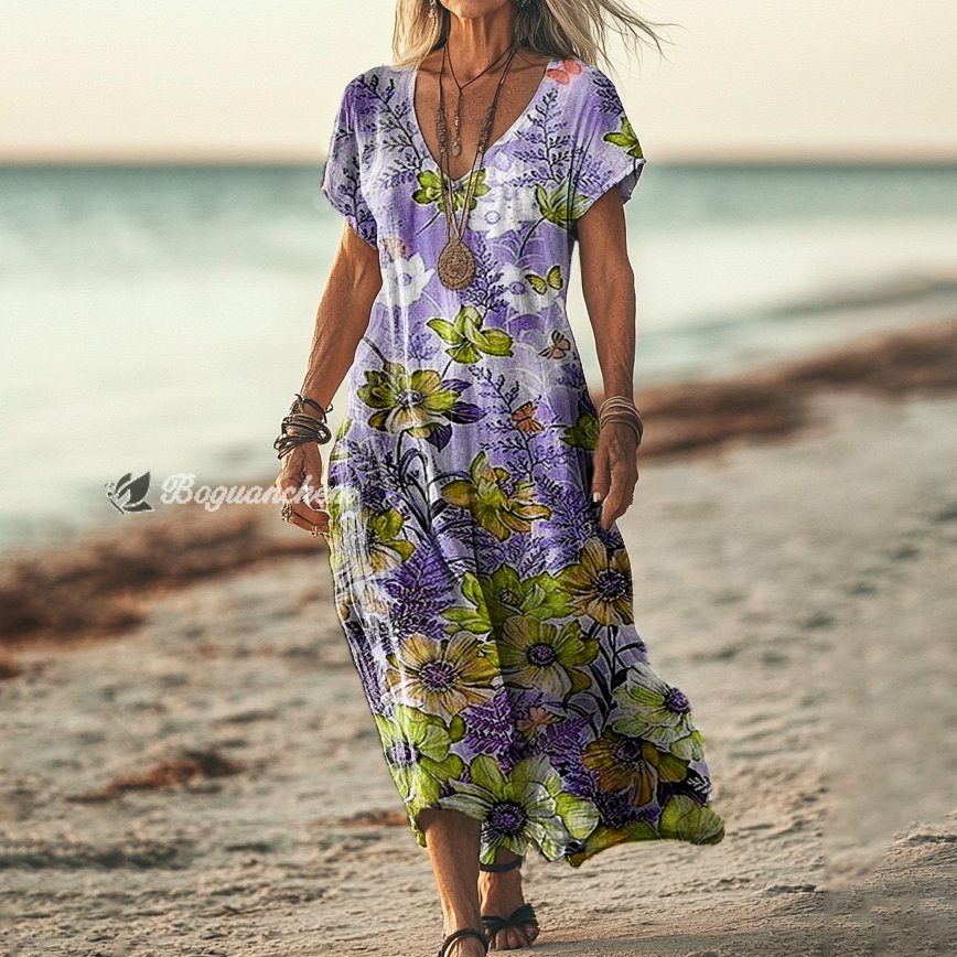 Gender: For Women Style: Casual Fit Type:FIt Shirt Length: Regular Sleeves Length: Short Sleeve Collar: V-Collar Material:Cotton Material Stretch: No Stretch Pocket :Side poctket Weight: 0.300kg Package:1 x Dress