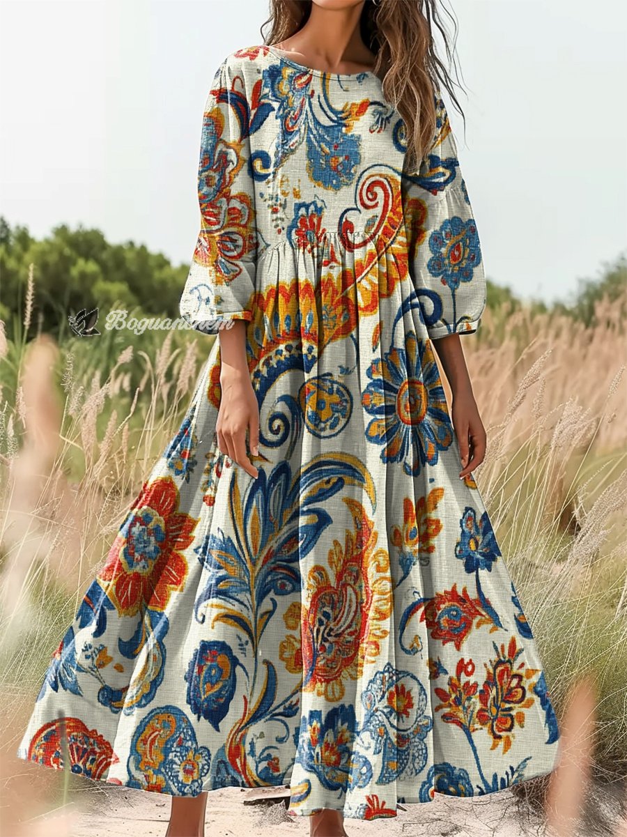 Gender: For Women Style: Casual Fit Type:FIt Shirt Length: Regular Sleeves Length:3/4 Sleeve Collar: Round Collar Material: 100%Cotton Material Stretch: No Stretch Pocket :Side poctket Weight: 0.300kg Package:1 x Dress
