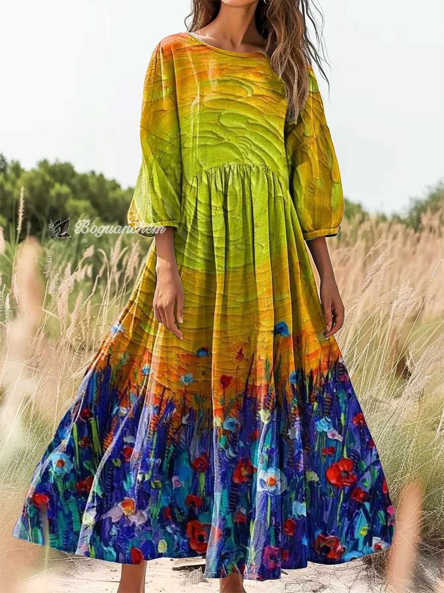 Gender: For Women Style: Casual Fit Type:FIt Shirt Length: Regular Sleeves Length:3/4 Sleeve Collar: Round Collar Material: 100%Cotton Material Stretch: No Stretch Pocket :Side poctket Weight: 0.300kg Package:1 x Dress