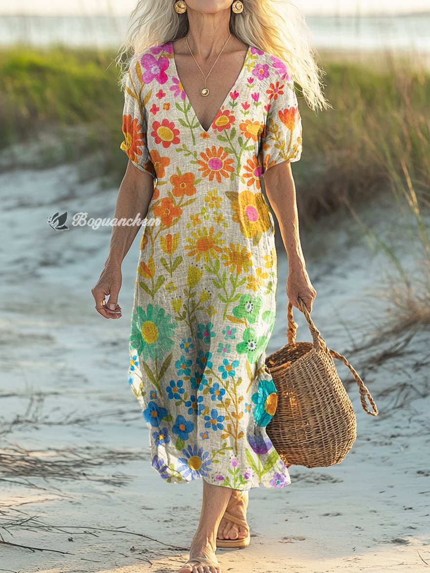Gender: For Women Style: Casual Fit Type:FIt Shirt Length: Regular Sleeves Length: Short Sleeve Collar: V-Collar Material:Cotton Material Stretch: No Stretch Pocket :Side poctket Weight: 0.300kg Package:1 x Dress