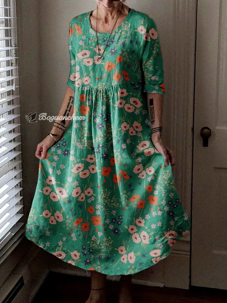 Gender: For Women Style: Casual Fit Type:FIt Shirt Length: Regular Sleeves Length: Long Sleeve Collar: Round Collar Material:Cotton+Linen Material Stretch: No Stretch Pocket :side poctket Weight: 0.300kg Package:1 x Dress