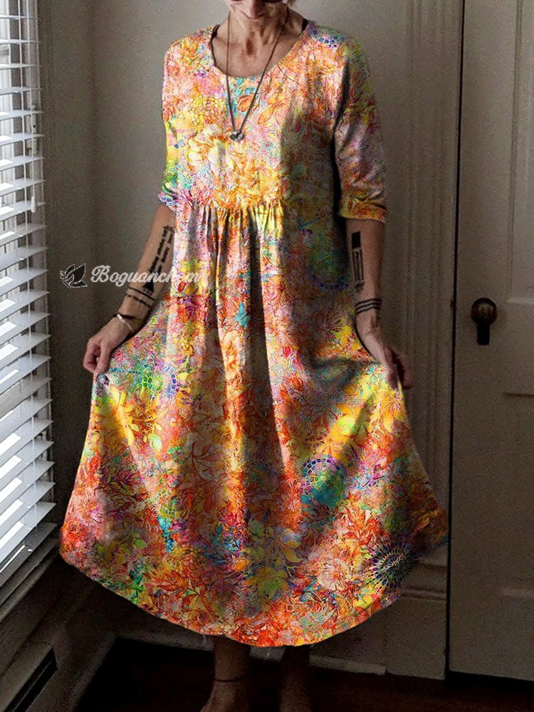 Gender: For Women Style: Casual Fit Type:FIt Shirt Length: Regular Sleeves Length: Long Sleeve Collar: Round Collar Material:Cotton+Linen Material Stretch: No Stretch Pocket :side poctket Weight: 0.300kg Package:1 x Dress