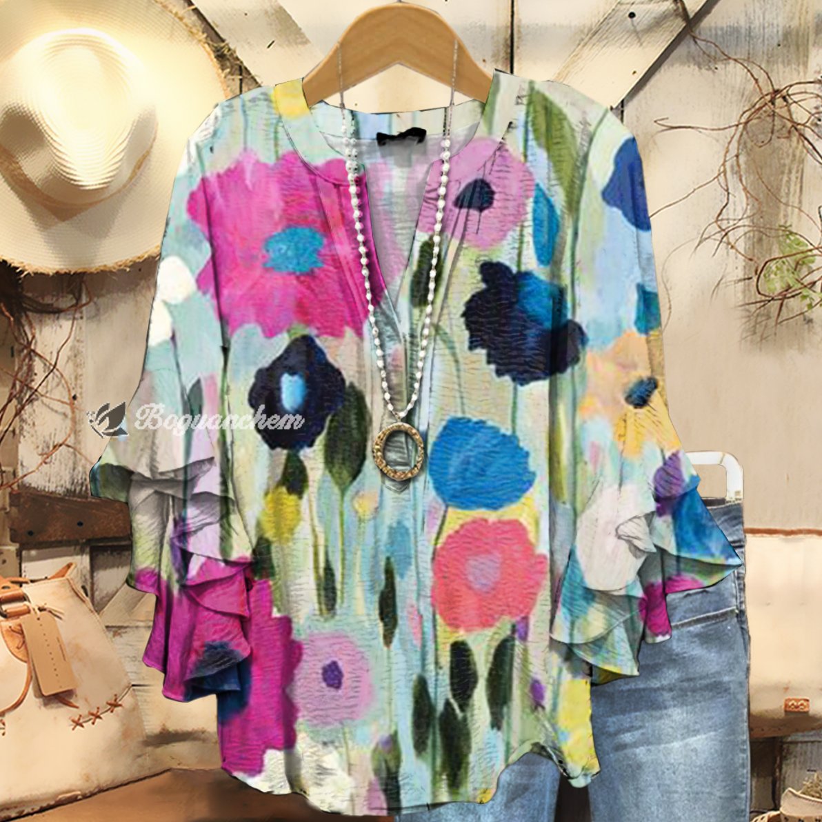 Women's Painting Floral Art Print Casual Cotton And Linen Shirt