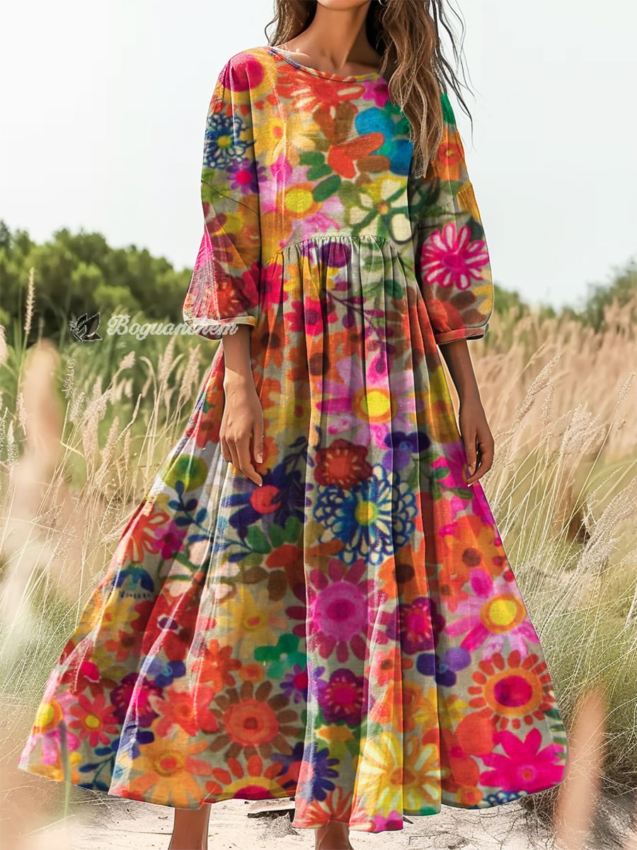 Gender: For Women Style: Casual Fit Type:FIt Shirt Length: Regular Sleeves Length:3/4 Sleeve Collar: Round Collar Material: 100%Cotton Material Stretch: No Stretch Pocket :Side poctket Weight: 0.300kg Package:1 x Dress