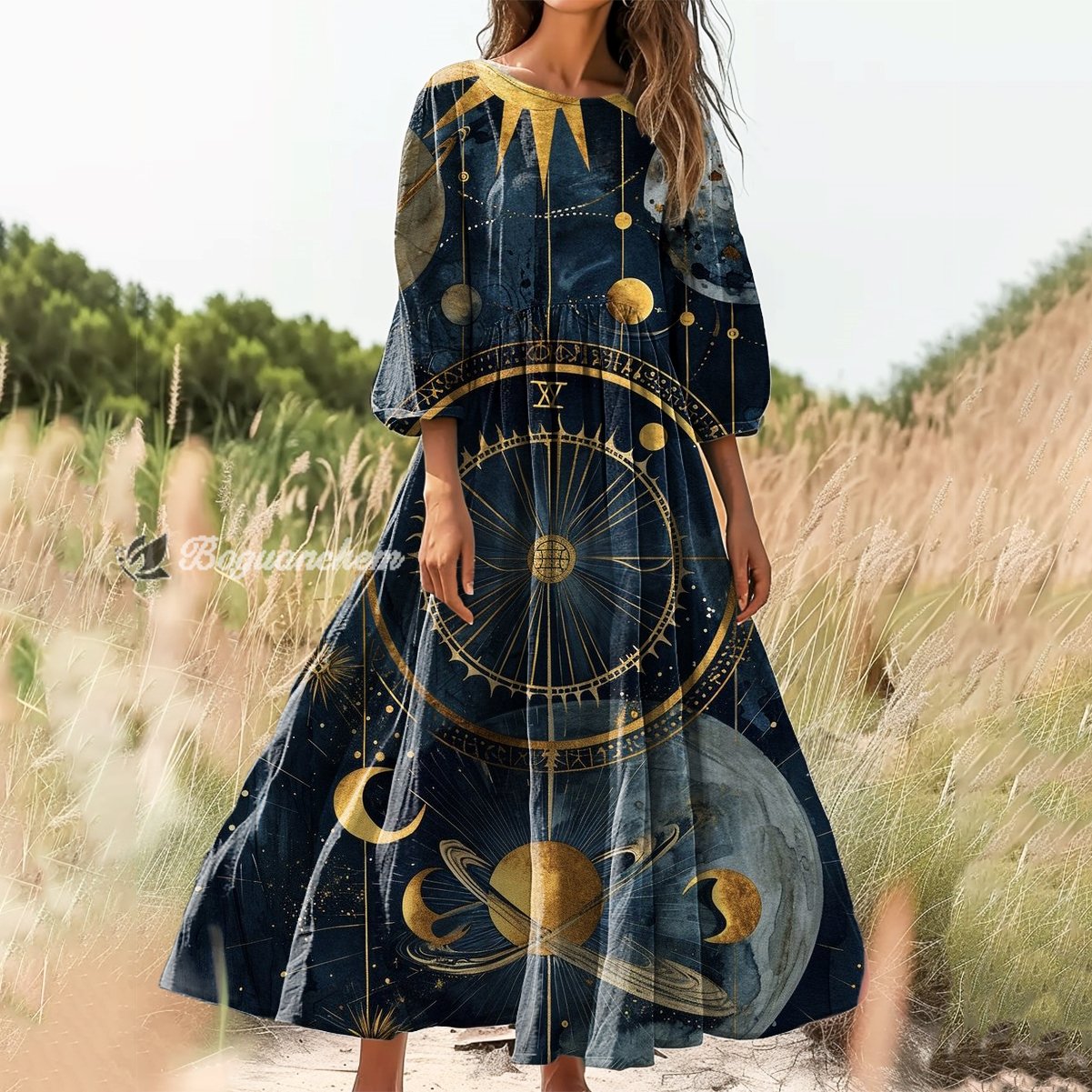 Gender: For Women Style: Casual Fit Type:FIt Shirt Length: Regular Sleeves Length:3/4 Sleeve Collar: Round Collar Material: 100%Cotton Material Stretch: No Stretch Pocket :Side poctket Weight: 0.300kg Package:1 x Dress