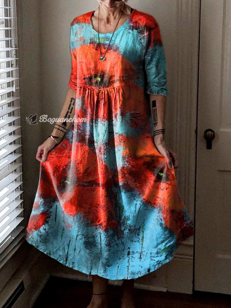 Gender: For Women Style: Casual Fit Type:FIt Shirt Length: Regular Sleeves Length: Long Sleeve Collar: Round Collar Material:Cotton+Linen Material Stretch: No Stretch Pocket :side poctket Weight: 0.300kg Package:1 x Dress
