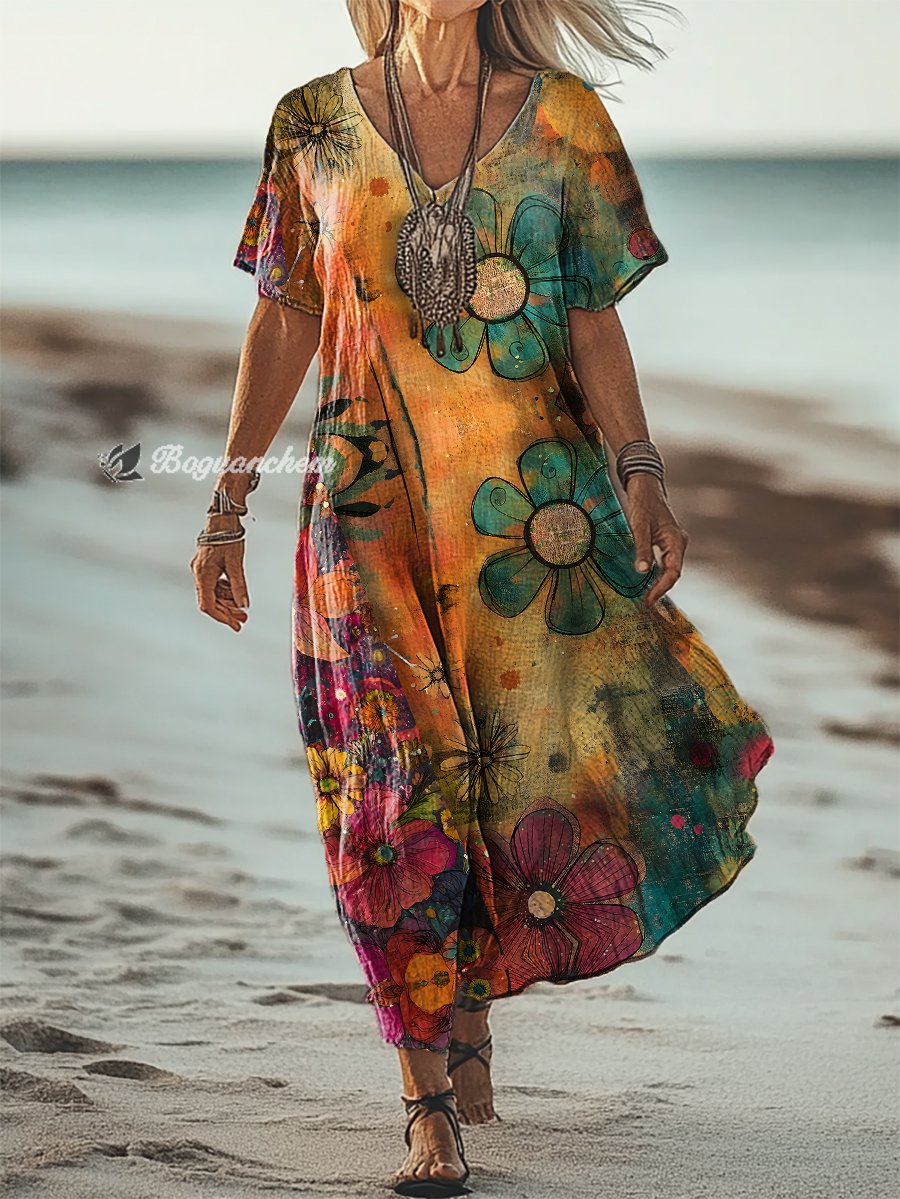 Gender: For Women Style: Casual Fit Type:FIt Shirt Length: Regular Sleeves Length: Short Sleeve Collar: V-Collar Material:Cotton Material Stretch: No Stretch Pocket :Side poctket Weight: 0.300kg Package:1 x Dress