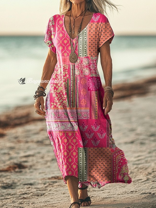 Gender: For Women Style: Casual Fit Type:FIt Shirt Length: Regular Sleeves Length: Short Sleeve Collar: V-Collar Material:Cotton Material Stretch: No Stretch Pocket :Side poctket Weight: 0.300kg Package:1 x Dress
