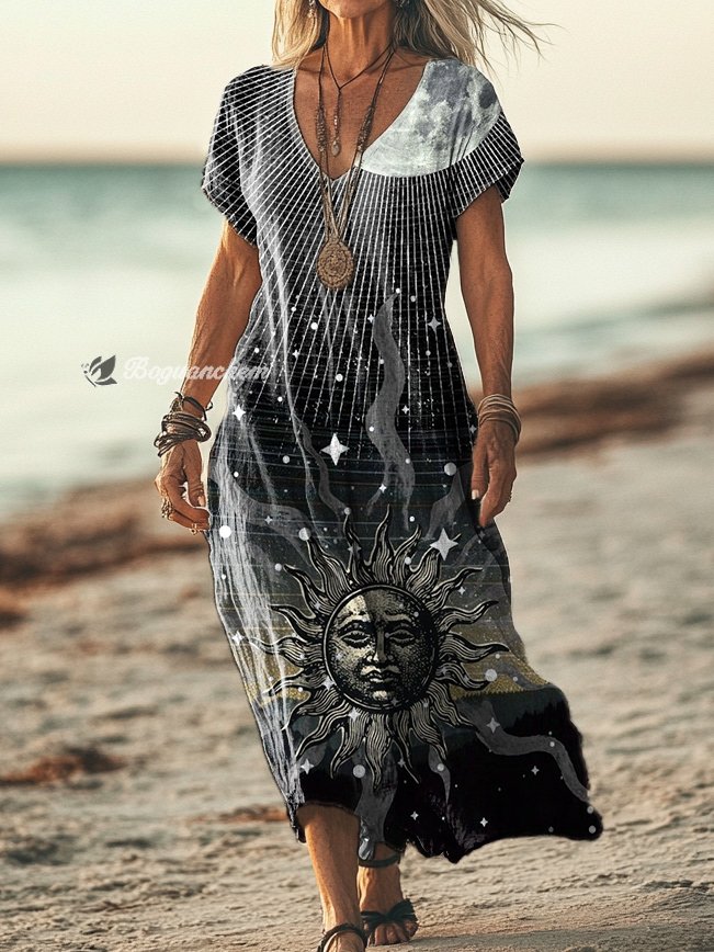 Gender: For Women Style: Casual Fit Type:FIt Shirt Length: Regular Sleeves Length: Short Sleeve Collar: V-Collar Material:Cotton Material Stretch: No Stretch Pocket :Side poctket Weight: 0.300kg Package:1 x Dress